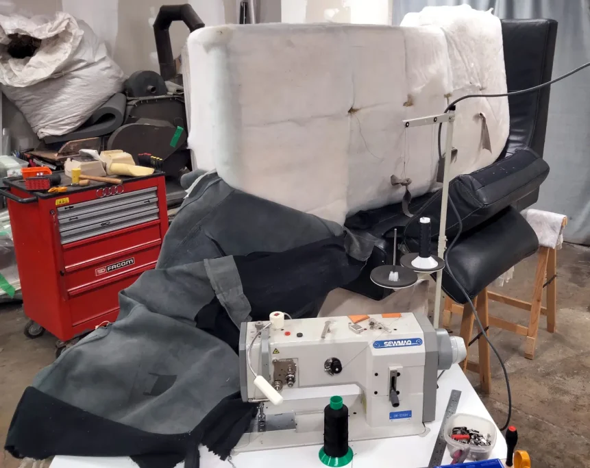 Notre expertise porte sur le travail des mousses de haute densité et le revêtement (cuir, tissus techniques) pour redonner du galbe et du confort à vos pièces maîtresses.
